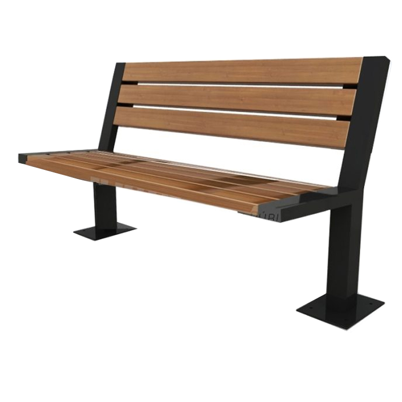 Banqueta Plaza con estructura metálica acero carbono, terminado pintura electroestática en polvo color Negro Mate. Con asiento y respaldo de madera Pino, terminación Barnizado, Capacidad 4 personas, con perforaciones en base para fijar a piso