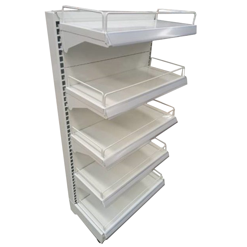 Cabecera Frente de Caja, con Estante Base + 4 Estantes Superiores, Con Porta Precios plásticos, Rejillas Frontales y Laterales.
