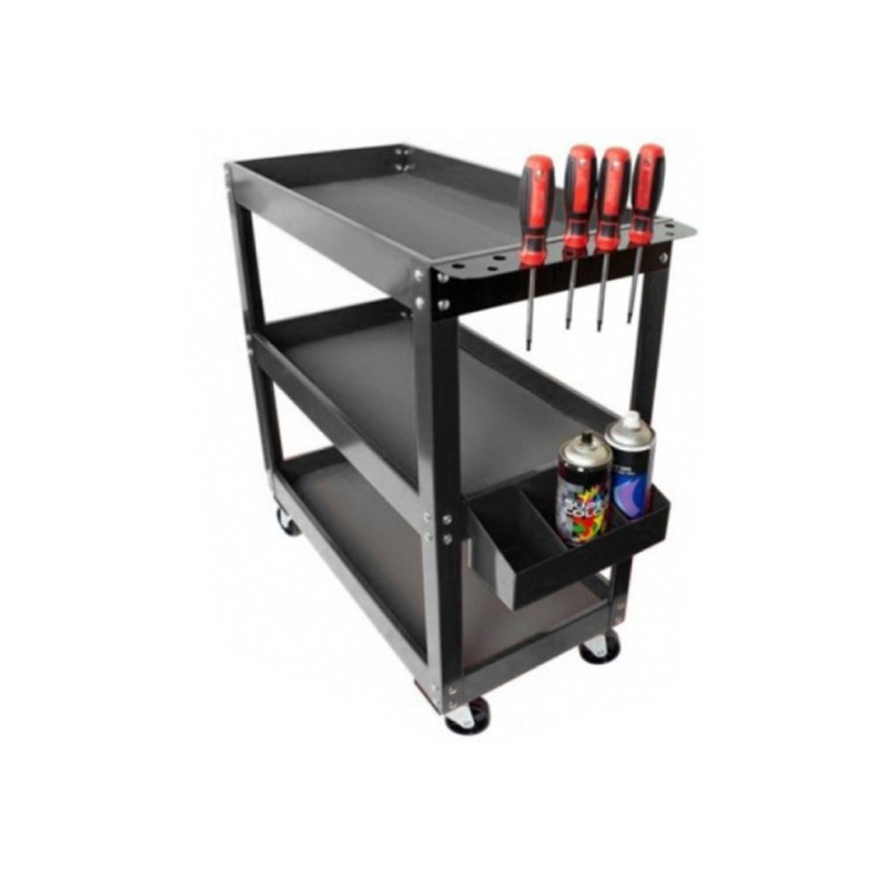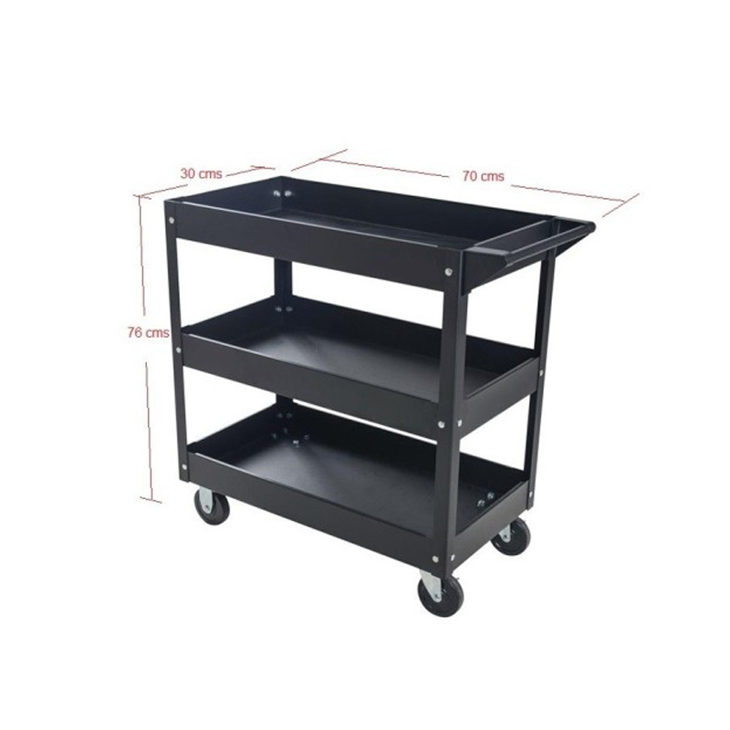 Carro Portátil Organizador para herramientas de trabajo con 3 Niveles. Fabricado en Acero, carga Total: 100 Kilos, con 4 ruedas. Con Manillar Asa para el traslado. Color Negro.