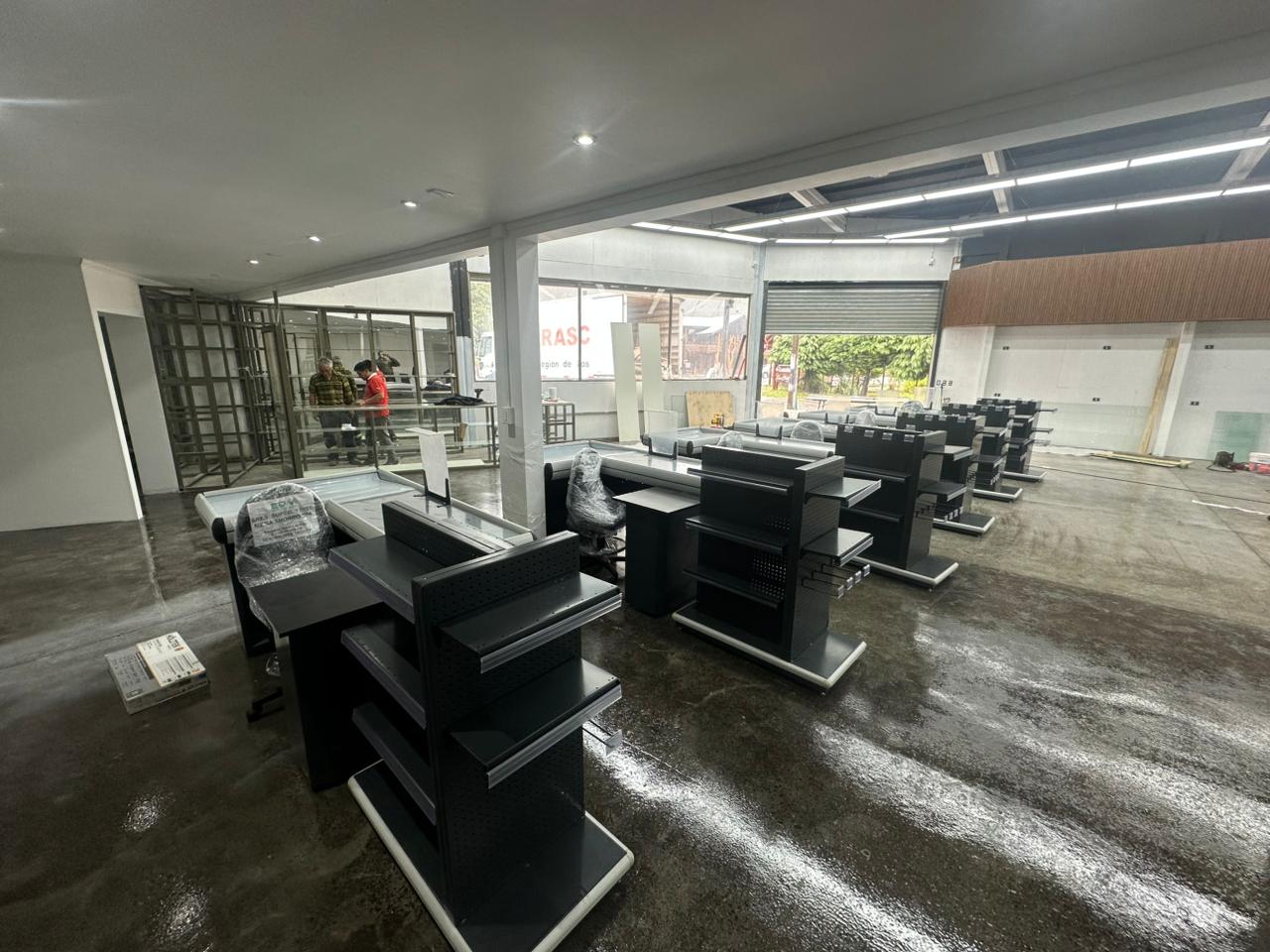 Exhibidor Frente de Caja Central con Fondo Perforado, con 6 canastos centrales. Origen Argentina