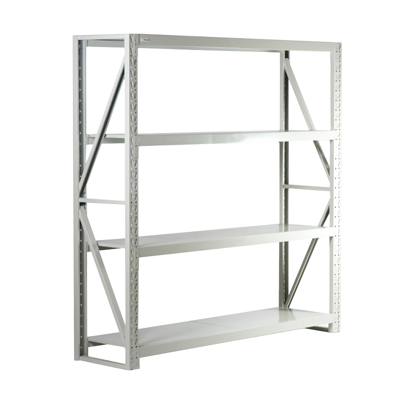 Rack de almacenaje para bodega, con 2 bastidores laterales, con 4 niveles de carga con pisos metálicos. Terminación Pintura Electrostática Color Blanco.
