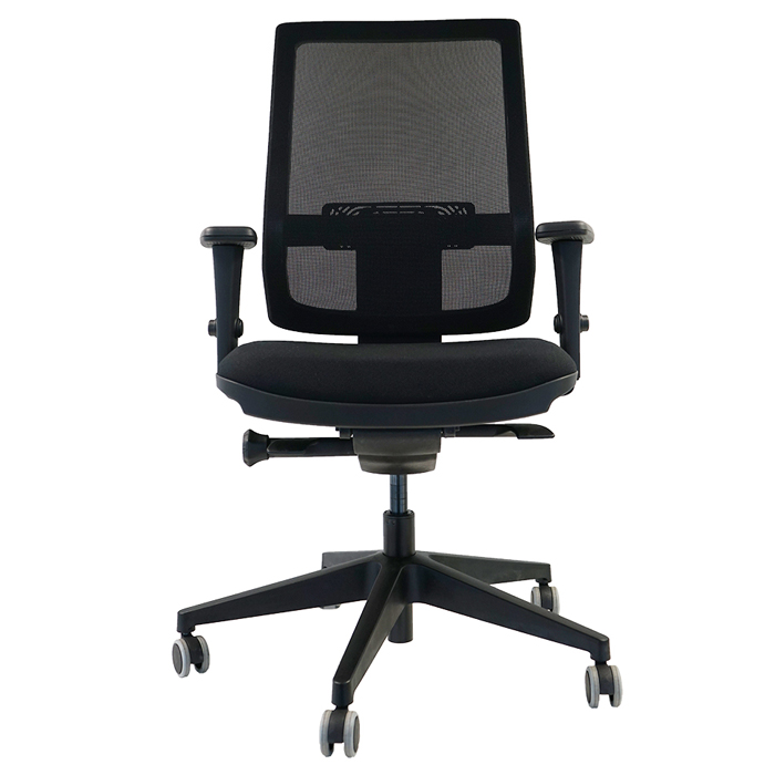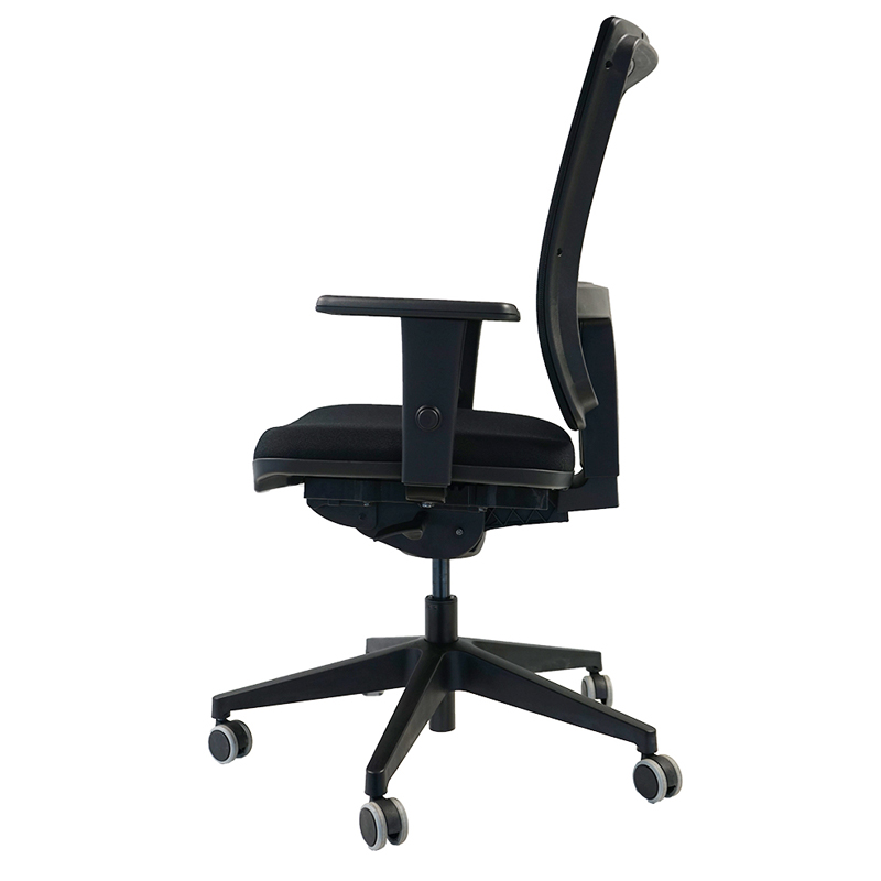 Silla Oficina Ejecutiva, con asiento tapizado con espuma inyectada, brazos regulables 3D, con respaldo Malla con slider y apoyo lumbar. Base y estrella de nylon. Con ruedas.