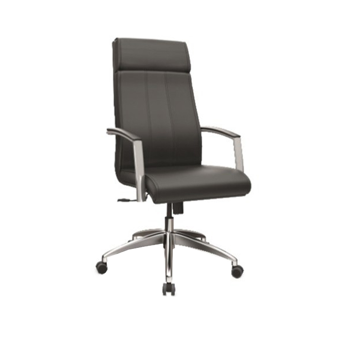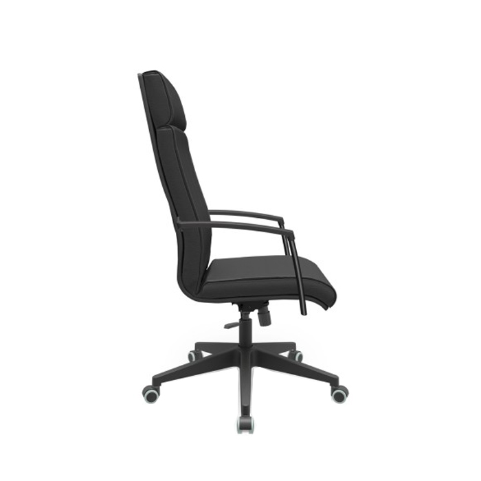 Sillón Gerencial con respaldo alto y sistema de oscilación. Pistón de regulación de altura. Estrella Poliamida. Estructura interna de madera con refuerzos en escuadras metálicas.